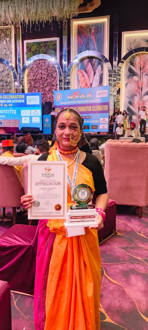 समाजसेवा की नई मिसाल गढ़ने वाले दो नाम, आधारशिला रक्तदान समूह कोटद्वार एवं ग्रीन आर्मी देवभूमि उत्तराखंड के स्वयंसेवक याशिका जखवाल एवं शिवम नेगी ने अपने कार्य से पूरे कोटद्वार व जिले का मान बढ़ाया। पर्यावरण संरक्षण ,रक्तदान ,खेल गतिविधि शैक्षिक नवाचार, जनजागरूकता, स्वच्छता कार्यक्रम, पशु रेस्क्यू निराश्रित लोगों की सहायता करना ,क्षेत्र में निरंतर सेवा वाले युवा समाजसेवियों याशिका जखवाल एवं शिवम नेगी को यंग कम्युनिटी चैंपियन अवॉर्ड से नवाजा गया एवं साथ ही साथ उन्हें “वर्ल्ड रिकॉर्ड ऑफ एक्सीलेंस इंग्लैंड” के प्रमाण पत्र से सम्मानित किया गया।