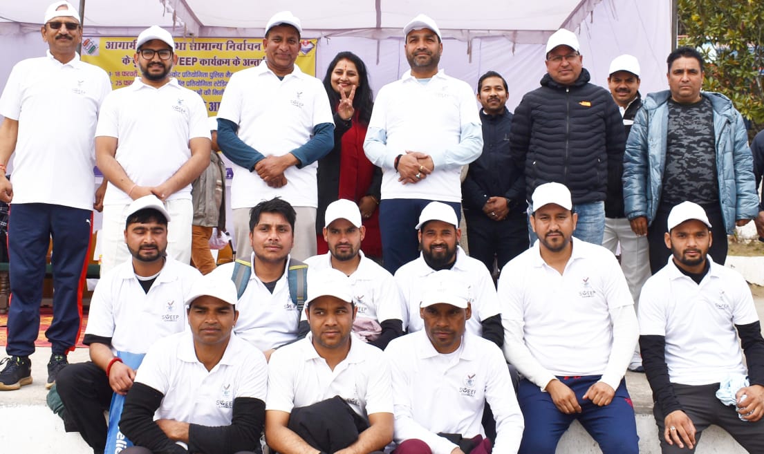 क्रिकेट प्रतियोगिता में माननीय जिला जज धर्म सिंह, जिला विधिक सेवा प्राधिकरण सचिव सिमरनजीत कौर, स्वीप कार्यक्रम के नोडल अधिकारी/मुख्य विकास अधिकारी अभिनव शाह, जिला समन्वयक कुलदीप गैरोला, वरिष्ठ पत्रकार एवं युवा खिलाड़ियों ने बडे उत्साह के साथ प्रतिभाग करते हुए मतदान अवश्य करने की शपथ ली।