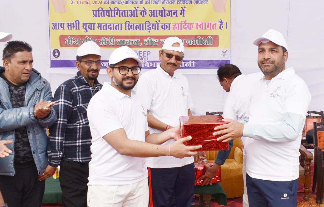 स्वीप के तहत आयोजित क्रिकेट प्रतियोगिता में महाविद्यालय गोपेश्वर, जिला प्रशासन, जिला न्यायलय एकादश तथा पत्रकार एकादश की टीमों ने प्रतिभाग किया। पहला मैच जिला न्यायालय एकादश और जिला प्रशासन के बीच खेला गया। जिसमें जिला प्रशासन की टीम ने 58 रनों से जीत दर्ज की। जबकि दूसरा मैच पत्रकार एकादश और महाविद्यालय गोपेश्वर की टीम के बीच हुआ। जिसमें महाविद्यालय गोपेश्वर ने 02 विकेट से जीत दर्ज की। फाइनल मुकाबला जिला प्रशासन और महाविद्यालय गोेपेश्वर की टीम के बीच हुआ। जिसमें जिला प्रशासन की टीम ने 52 रनों से जीत दर्ज की। स्वीप के नोडल अधिकारी अभिनव शाह ने विजेताओं एवं उप विजेता टीमों को पुरस्कृत करते हुए सबसे मतदान अवश्य करने का आवाह्न किया।