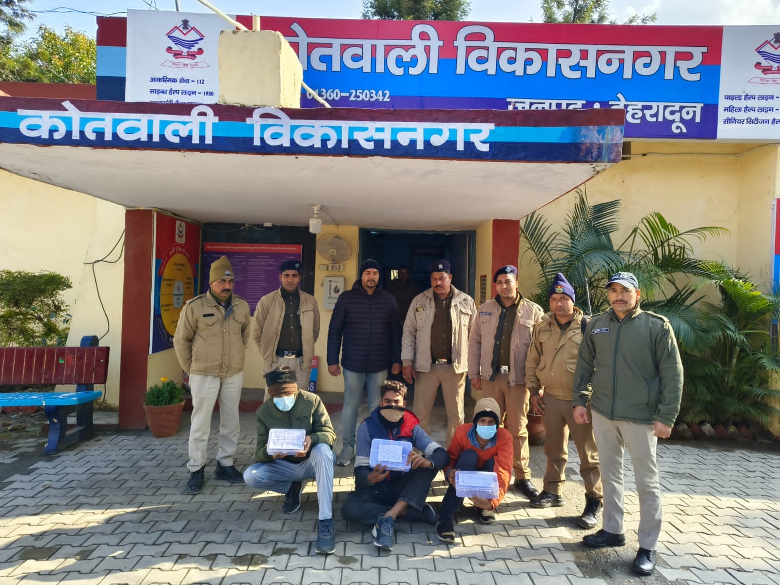 04 फरवरी 2024 को समय करीब 18:00 बजे विकासनगर क्षेत्र में स्थित न्यू राणा ज्वैलर्स शॉप में 03 हथियारबंद बदमाशों द्वारा लूट की घटना को अंजाम देने का प्रयास किया गया, जिनमें से 01 बदमाश नवीन सैनी पुत्र पुरषोत्तम सैनी, निवासी दिल्ली रोड हसनपुर चुंगी सहारनपुर उत्तरप्रदेश को स्थानीय लोगो द्वारा मौके पर मय तमंचे और कारतूस सहित पकड लिया गया तथा 02 अन्य बदमाश मौके से फरार हो गये, घटना की सूचना पर उच्चाधिकारियो को सूचित करते हुए थाना विकासनगर से पुलिस बल तत्काल मौके पर पहुंचा, घटना की सूचना पर वरिष्ठ पुलिस अधीक्षक देहरादून द्वारा तत्काल घटनास्थल पर पहुंचकर अधीनस्थ अधिकारियों से घटना के सम्बंध में जानकारी ली गई तथा कन्ट्रोल रूम के माध्यम से सभी थाना प्रभारियों को अपने-अपने थाना क्षेत्रों में स्थित सभी नाकों/बैरियरों पर आने-जाने वाले वाहनों/सदिंग्ध व्यक्तियों की चैकिंग हेतु सघन चैकिंग अभियान चलाने के निर्देश दिये गये। घटना के सम्बंध में न्यू राणा ज्वैलर्स शॉप के मालिक संजीव राणा द्वारा दी गई तहरीर के आधार पर कोतवाली विकासनगर में मु.अ.सं.-46/24, धारा 394 भादवि बनाम नवीन सैनी व अन्य पंजीकृत किया गया।