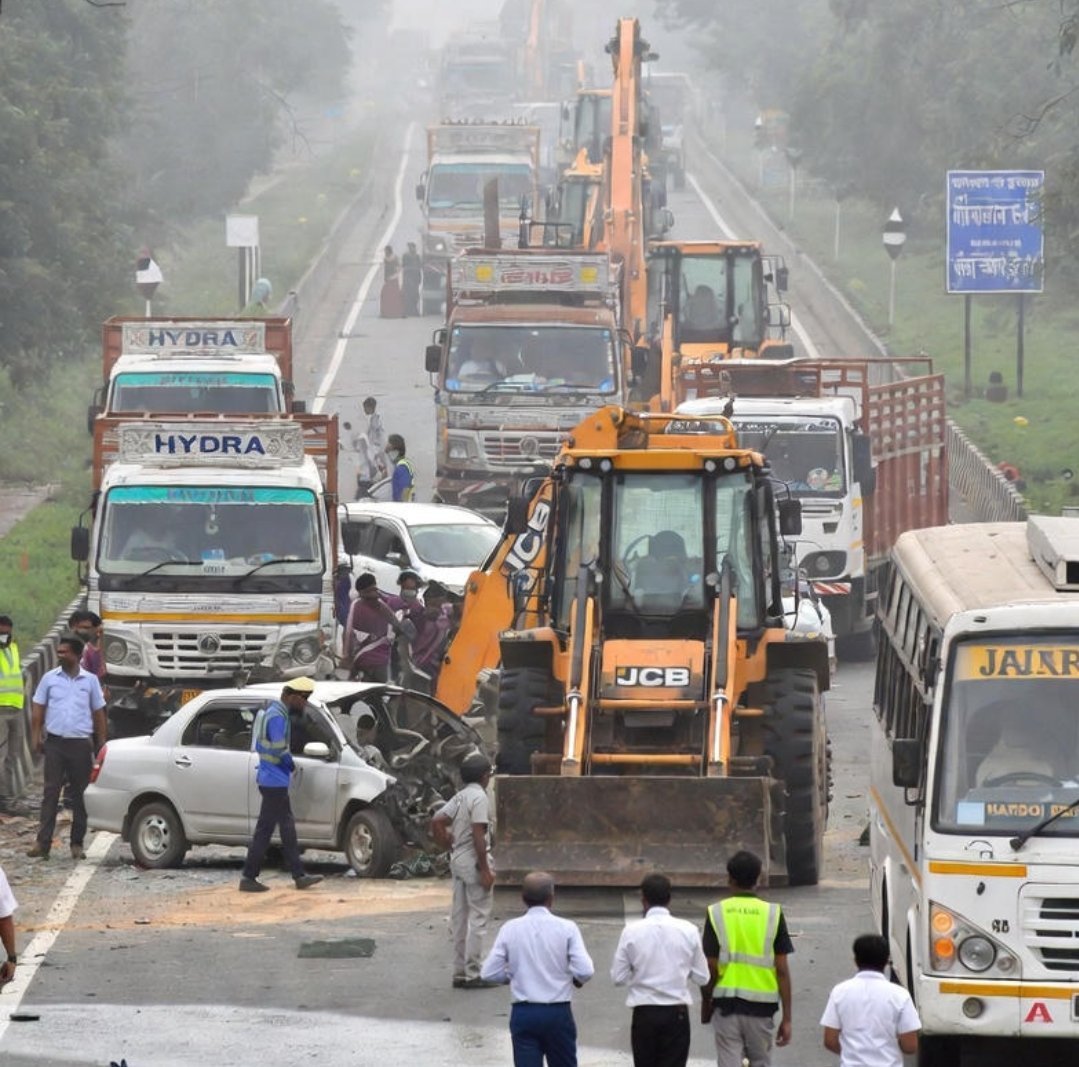 NH पर घने कोहरे में भीषण हादसा : दो की मौत, 10 घायल