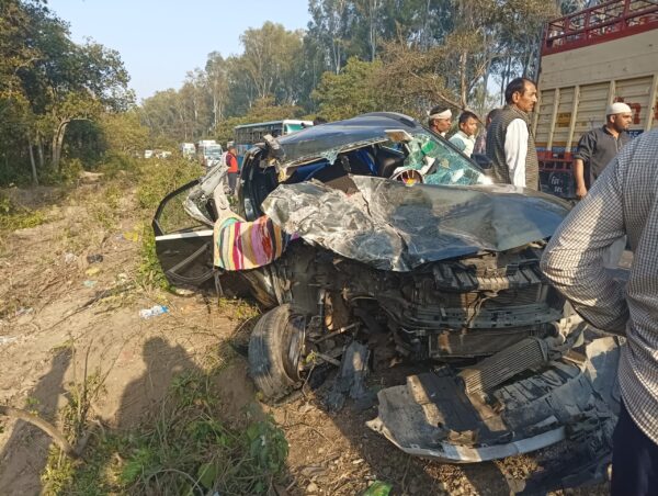 कोटद्वार । थाना नजीबाबाद के जाफरा चौकी के नजदीक सोमवार दोपहर को एक दर्दनाक हादसा हो गया। पौड़ी से नोएडा जा रही एक कार को एक गैस के ट्रक ने टक्कर मार दी जिसमें एक महिला की मौत हो गई जबकि उसका बेटा गंभीर रूप से घायल है।जानकारी के अनुसार पौड़ी धारकोट निवासी उर्मिला देवी अपने पुत्र जितेन्द्र कुमार के साथ नोएडा अपनी कार से जा रही थीं तभी अचानक रास्ते पर किसी अज्ञात वाहन ने उन्हें टक्कर मार दी। आकस्मिक सेवा 108 की मदद से दोनों को यहां कोटद्वार के बेस अस्पताल लाया गया, जहां डॉक्टर ने महिला को मृत घोषित कर दिया जबकि उनके पुत्र का उपचार किया जा रहा है। प्रत्यक्षदर्शियों ने बताया कि सिलेंडर के ट्रक का टायर फटने से वह कार में टकरा गया जिस कारण यह हादसा हुआ है ।